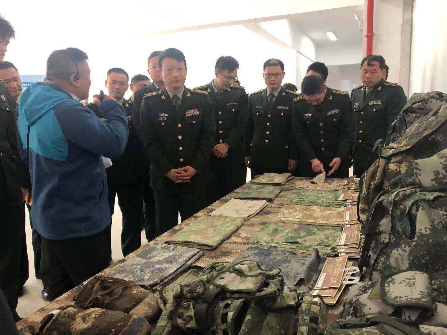 湯勇司令員及各領(lǐng)導(dǎo)實地參觀了公司智能化軍工被裝新材料生產(chǎn)線,并詳細了解我公司為國慶70周年閱兵獻禮的新型迷彩作訓(xùn)服材料。