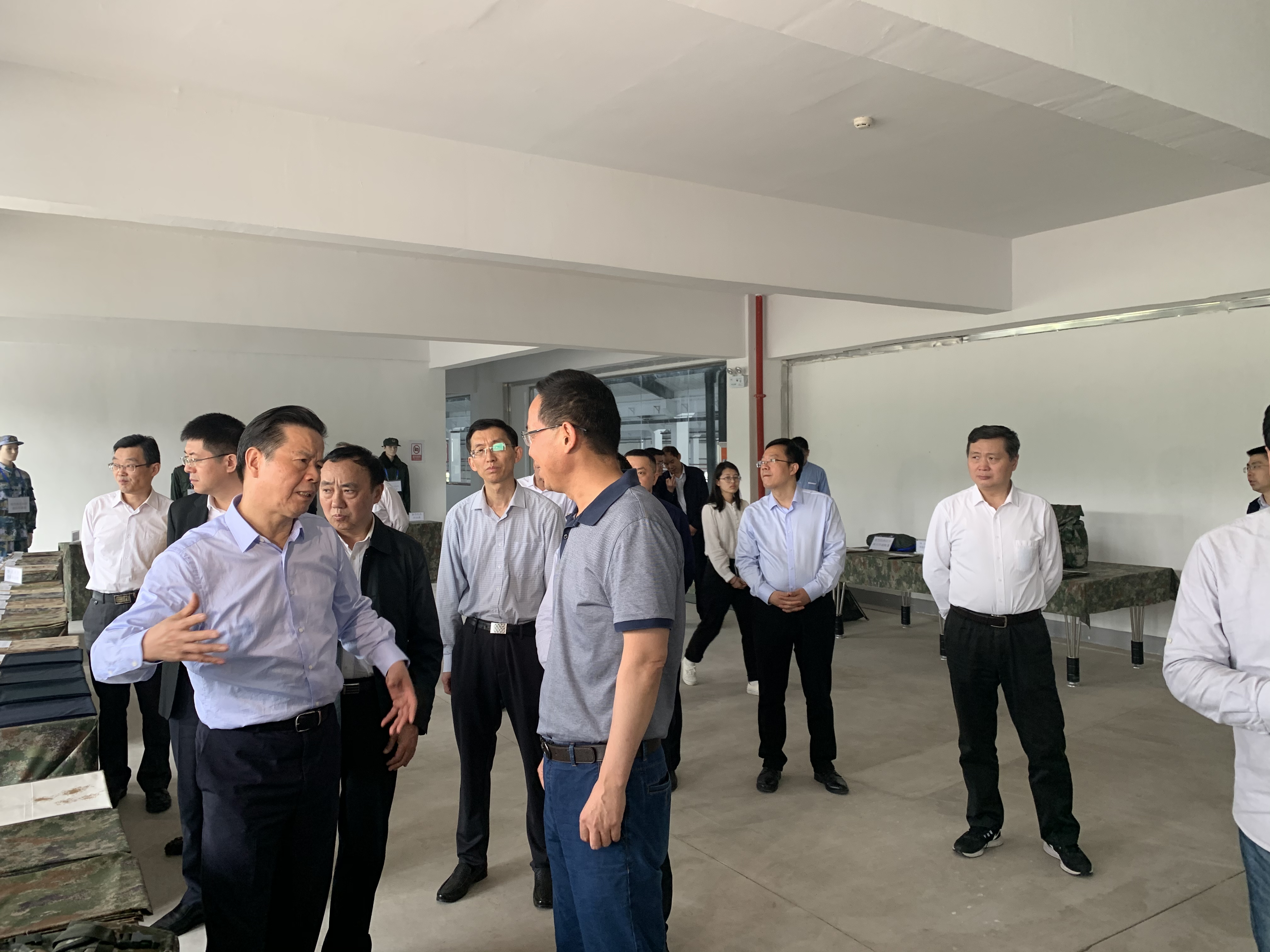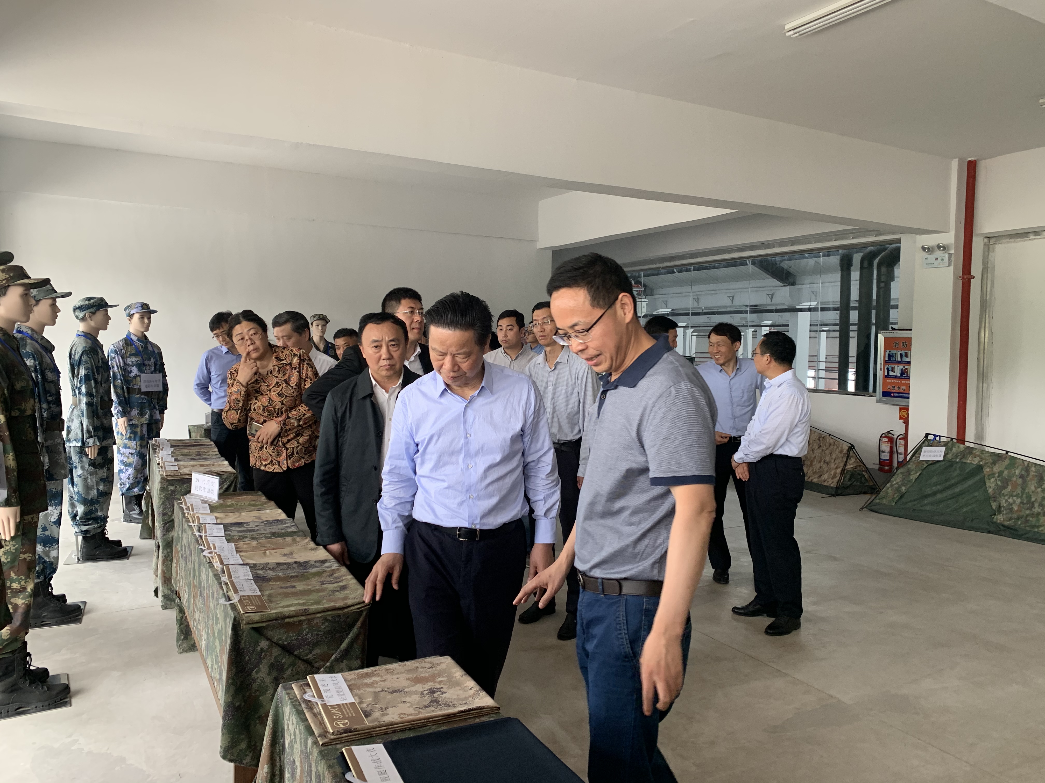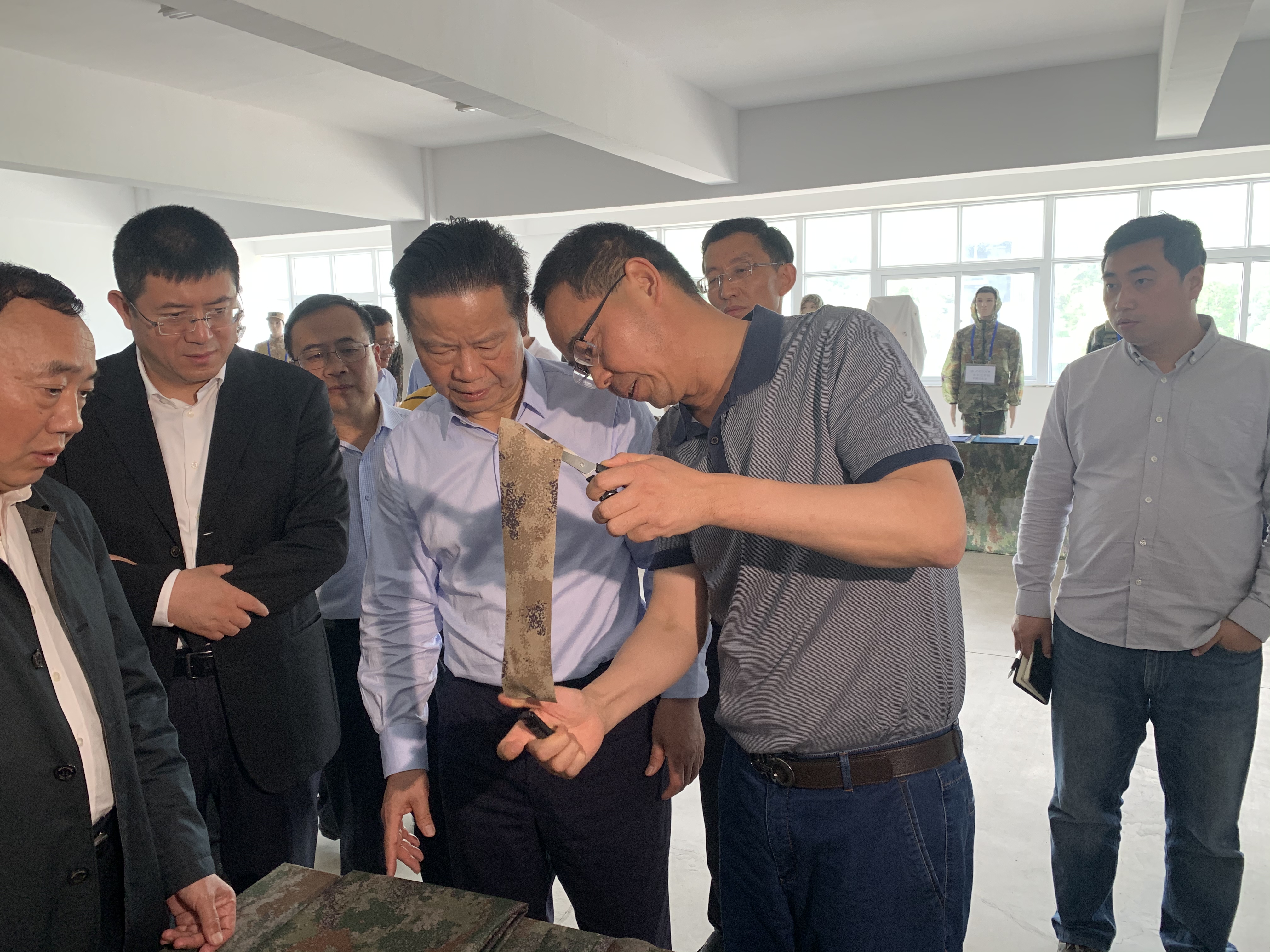 在詳細(xì)考察 “軍用裝具被裝和民用功能服裝材料產(chǎn)業(yè)示范項目”過程中,領(lǐng)導(dǎo)們對公司生產(chǎn)并即將在部隊列裝的“新型迷彩被裝材料”給予了高度的肯定與評價。