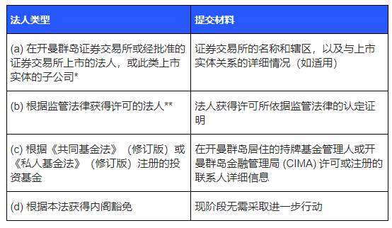 若您位于開曼群島的實(shí)體,按照此次修改前的法規(guī)被視為不在約束范圍內(nèi)或享受豁免權(quán)益,則須盡快對(duì)其進(jìn)行評(píng)估,確定該實(shí)體是否符合以下標(biāo)準(zhǔn)之一: