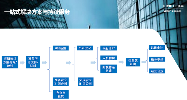 RICHFUL瑞豐就ODI備案和外匯登記向客戶提供一站式咨詢服務(wù);協(xié)助客戶準備ODI備案及外匯登記所需文件和材料;代表客戶向主管部門申請并完成相應(yīng)備案。